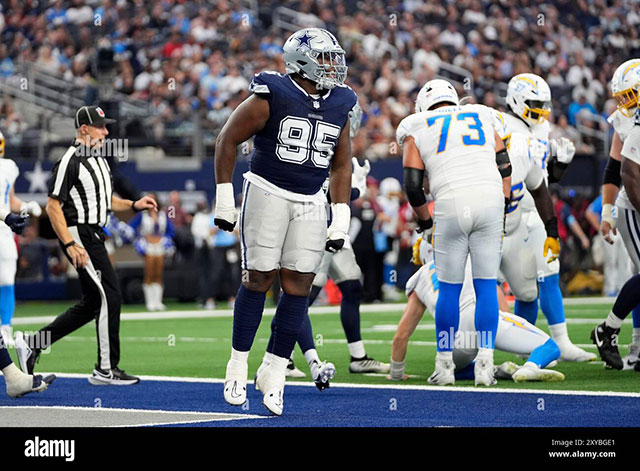 Cowboys DL Denzel Daxon celebrates after a big play during the 2024 season