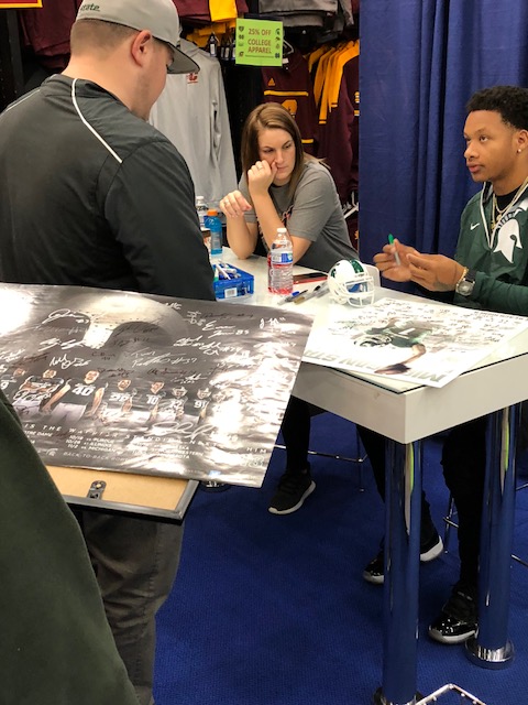 Running Back Gerald Holmes participates in an autograph signing for his alma mater Michigan State Spartans.