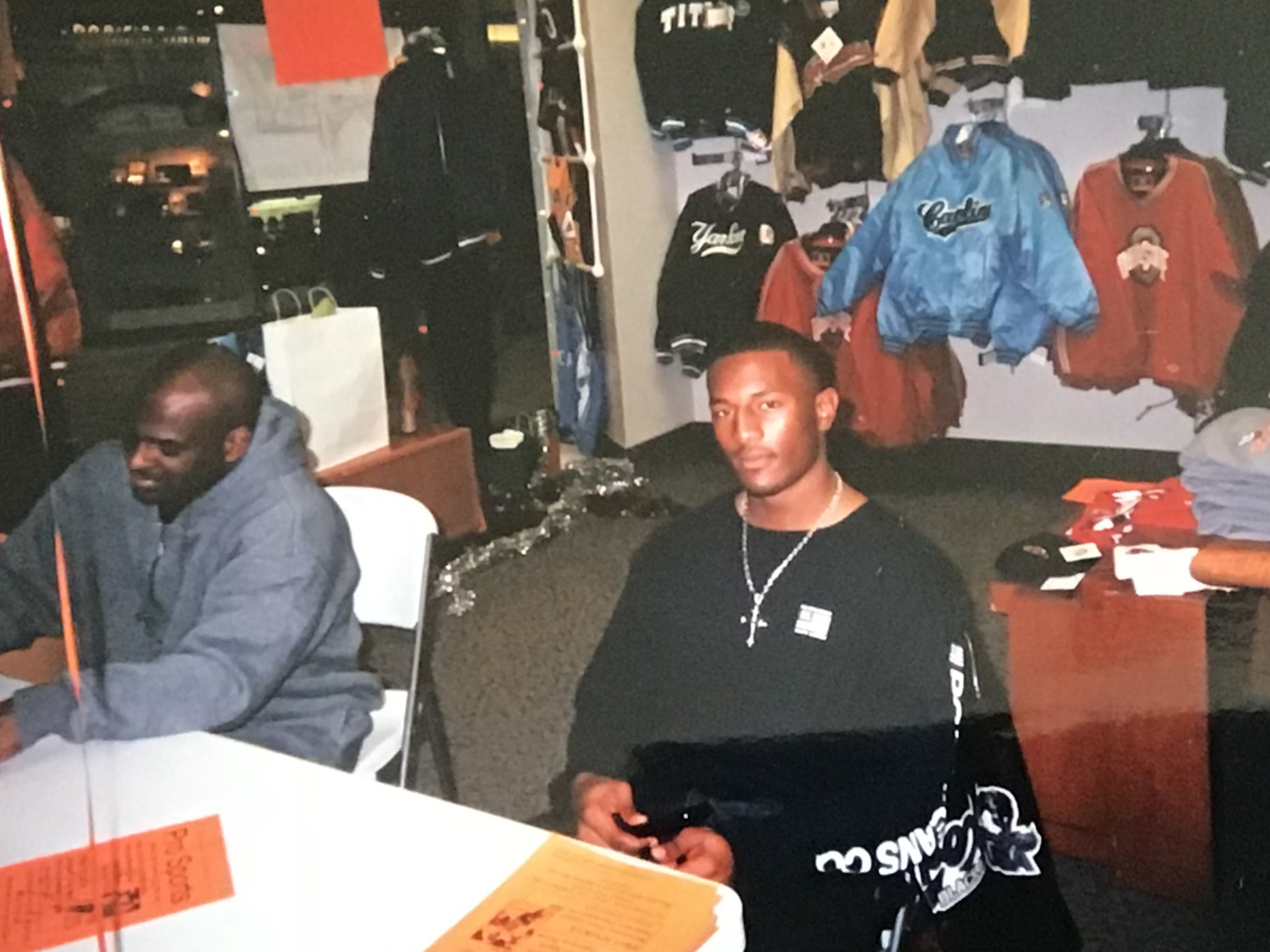 Dennis Northcutt posing with fans during an autograph session.