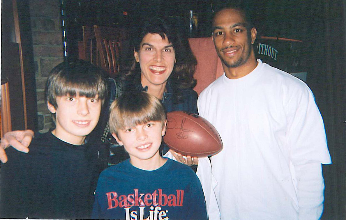 NFL Television Football Analyst Reggie Langhorne takes time to pose for a photo with a fan.