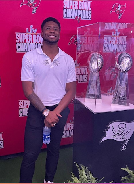 DB Javon Hagan celebrates his Super Bowl Championship as a member of the Tampa Bay Buccaneers.