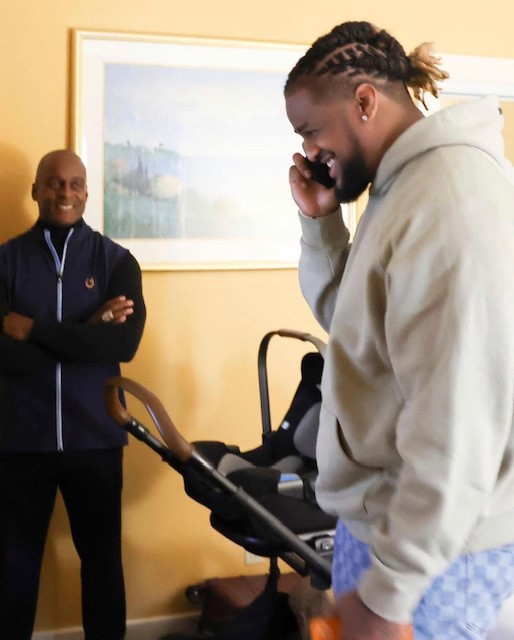 Mr. LeGrande helps Defensive Lineman Jermaine Reid celebrate his "big day"!