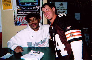 All-Pro WR Josh Cribbs poses with Mr. LeGrande during an autograph signing presented by Diamond Sports & Talent Management.