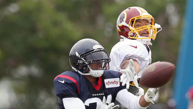 2015 Rookie Wide Receiver Tony Jones battles for a catch over an opposing defender.
